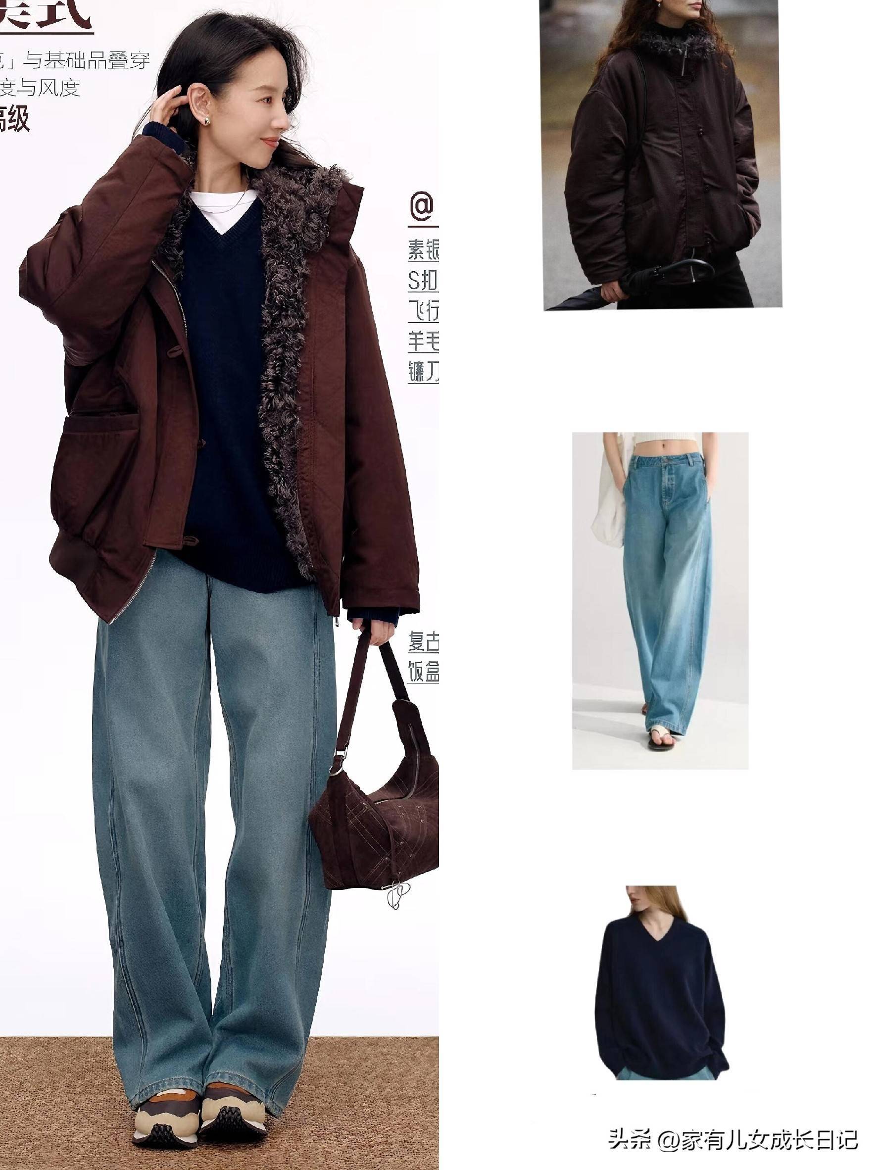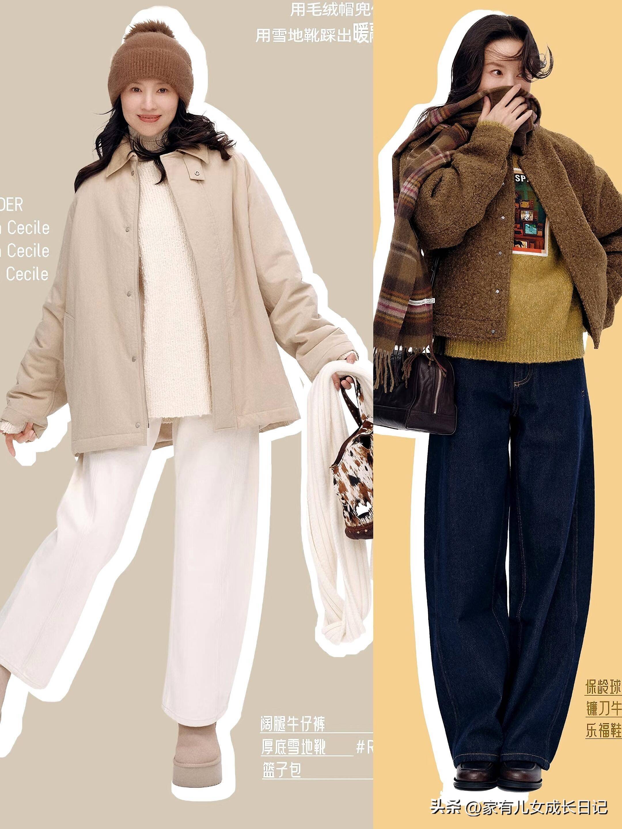 - 材质混搭:毛绒、针织、牛仔等不同材质组合,增加穿搭层次;