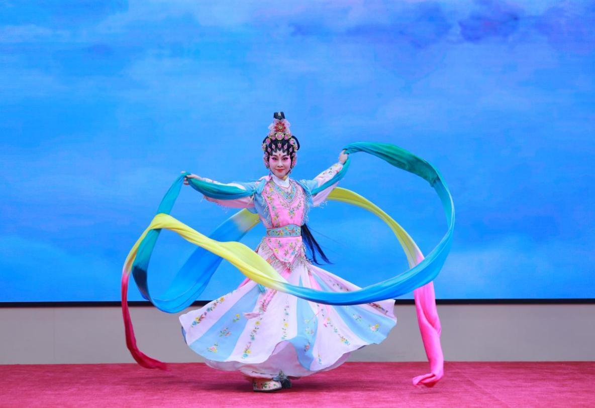 为了让古老艺术抓住孩子们的心,活动设计深谙“青春语态”。广州粤剧院优秀青年演员邓美丹为师生们带来了经典折子戏《天女散花》。七尺水袖翩然飞舞,华服装容精致唯美,孩子们看得目不转睛,完全沉浸在典雅奇幻的艺术世界里。