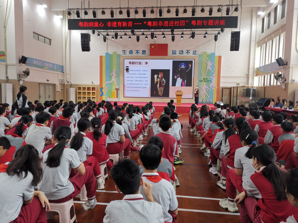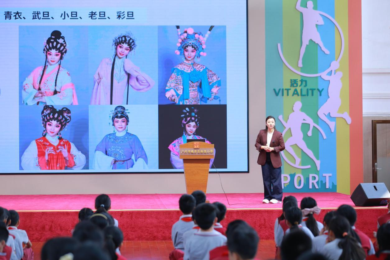 台上,熟悉的经典唱段响起,现场瞬间安静。广州粤剧院一级演员、广州市级非遗代表性传承人肖婉婷以一个优雅的身段、一句精准的解说,瞬间抓住了所有听众的心。这堂以《帝女花》为主题的导赏课,就在杨箕小学校园里。12月4日下午,由越秀区梅花村街道党工委、办事处主办,广州粤剧院与越秀区杨箕小学共同承办的“粤剧非遗进校园”专题讲座,在杨箕小学体育馆成功举办。活动吸引了该校260余名师生参与,现场气氛热烈,互动频频,呈现了一堂生动的传统文化美育实践课。