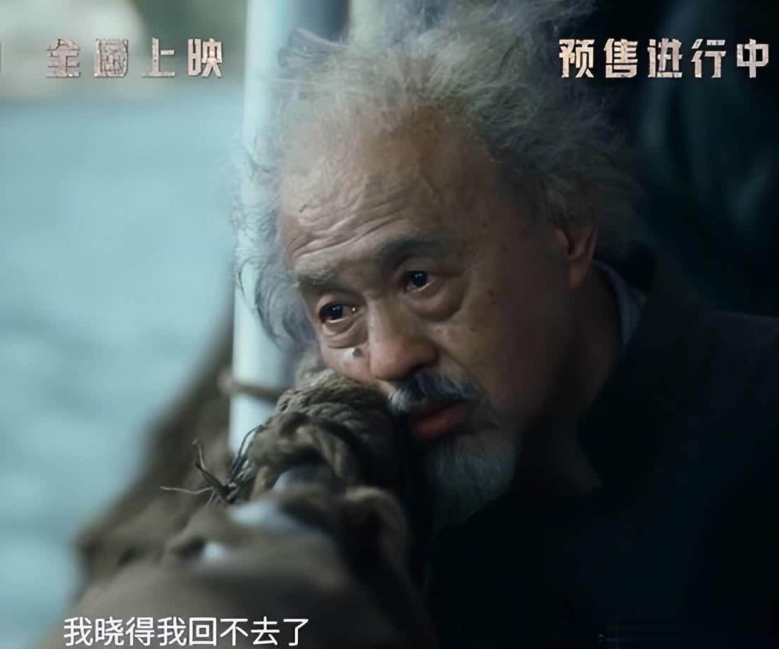 杨新鸣饰演的太爷,逃出南京后子孙后代只剩下莫得闲一人,满头凌乱的白发,倚靠在栏杆上,目光空洞,被抽干了力气一样。