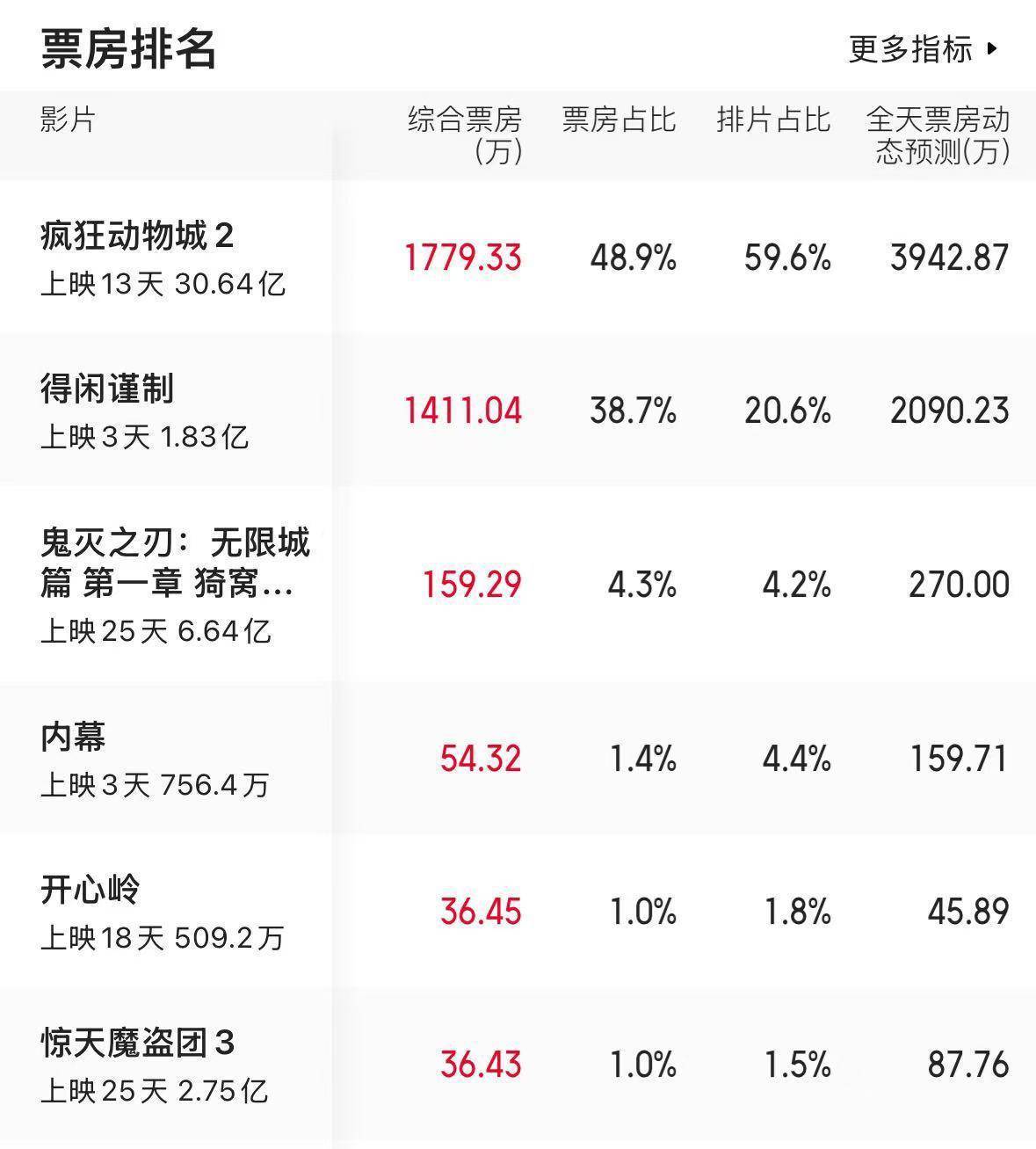 再者是市场竞争残酷,《内幕》上映恰逢强敌环伺,前有《疯狂动物城2》《得闲谨制》占据大量排片,后有《赛德克·巴莱》《阿凡达3》强势来袭,上映首日排片占比不到5%,根本没有喘息的机会。