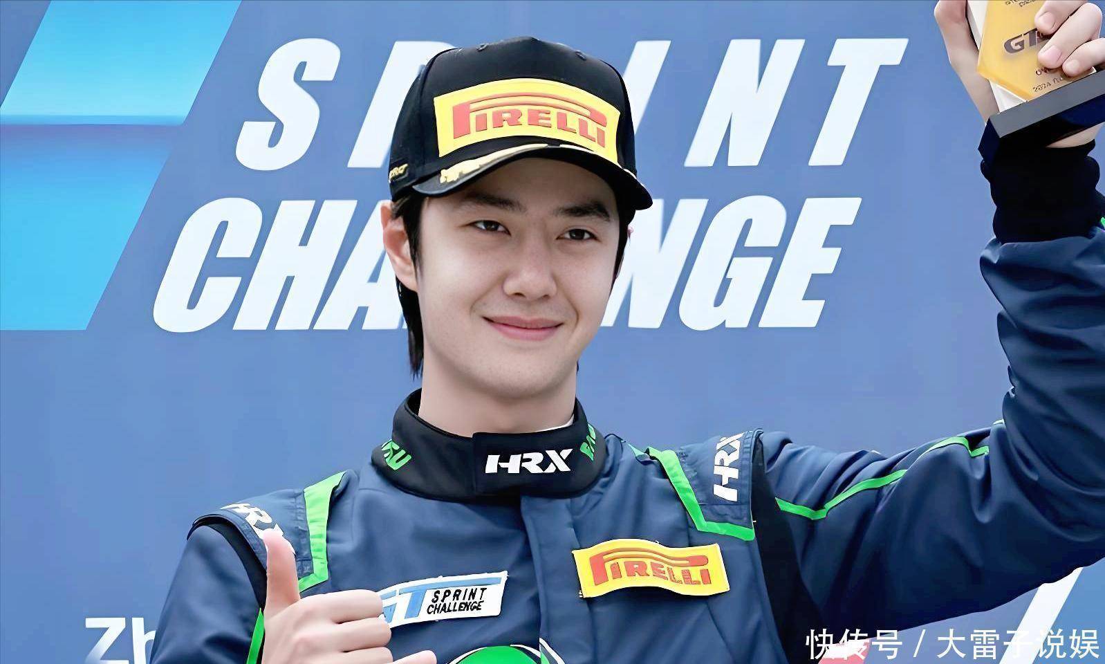 当时他发的照片里,赛车服上就印着“驾长车”三个字。