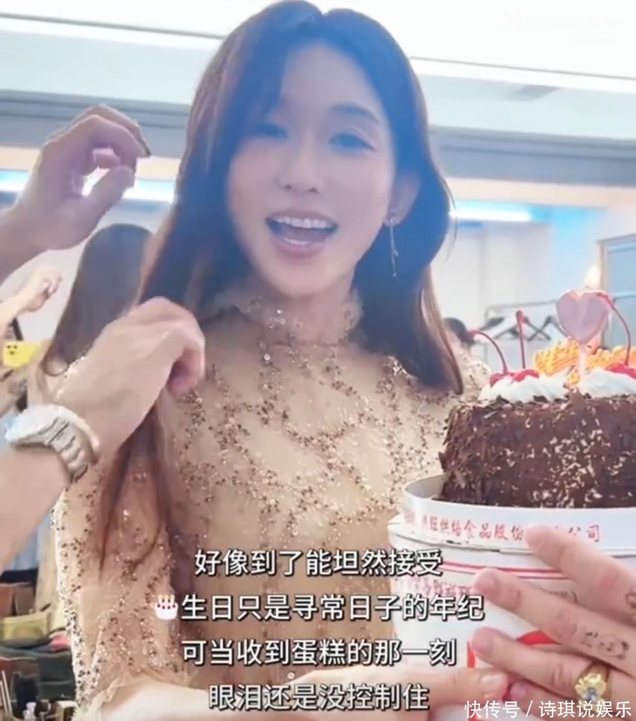 后面工作结束后,林志玲坐在化妆间换衣服,等待工作人员收拾东西时,又有另外一群人为她送上了一个生日蛋糕,而且这个生日蛋糕还是工作人员亲手制作的,林志玲的眼泪瞬间又涌出来了,撒娇的对工作人员说:“是不是你今天做的?”