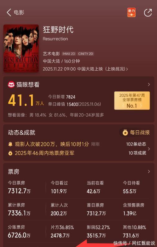 火,确实是火了。 在这个院线人人哀嚎的年代,《狂野时代》却仅靠预售就破1亿票房。 而随着票房大爆,一场口碑之战也瞬间拉响。 因为定位是“文艺电影”,看不看的懂就成了观众们争论的重点。