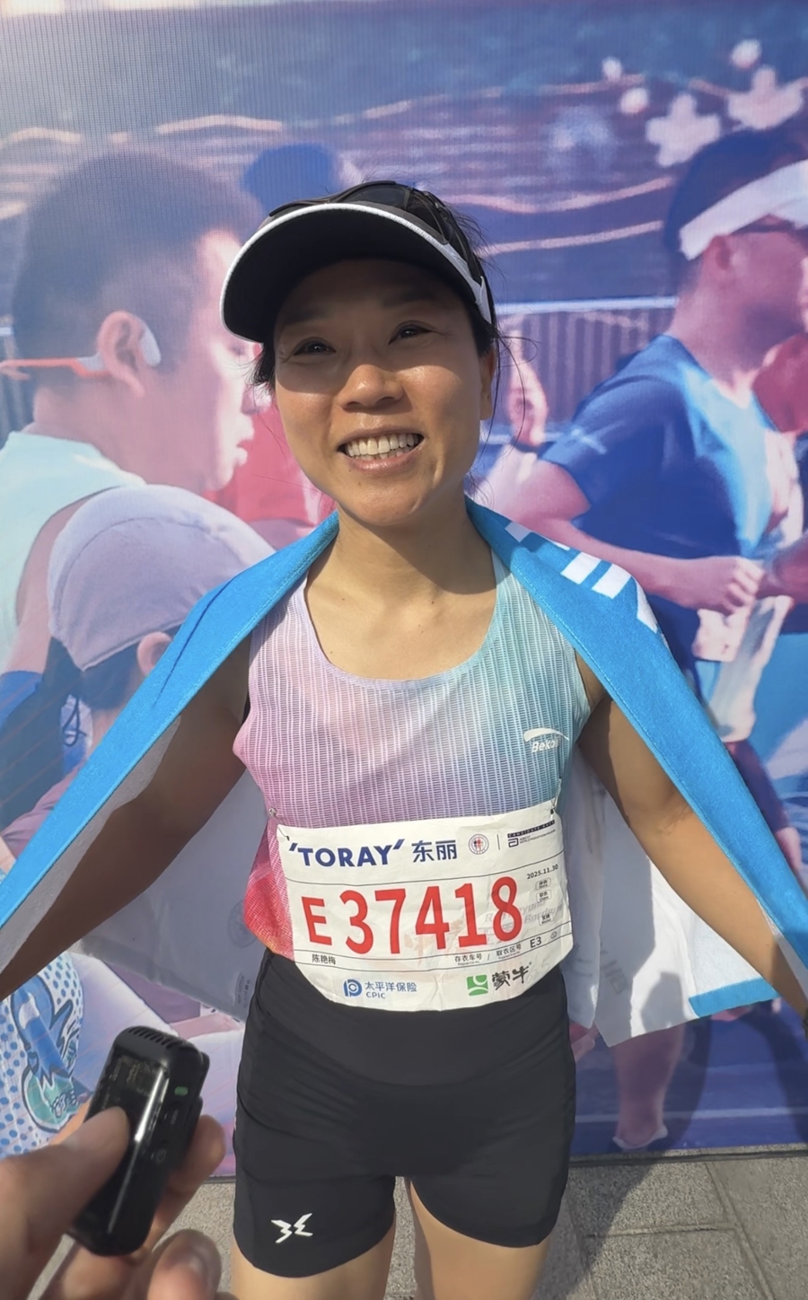 “太棒了,太热情了!”她一口气连用了好几个“太”。“服务很到位,赛道边上大家都在加油,上马真的很适合PB。我应该是破4了,比上次全马快了将近一个小时。”