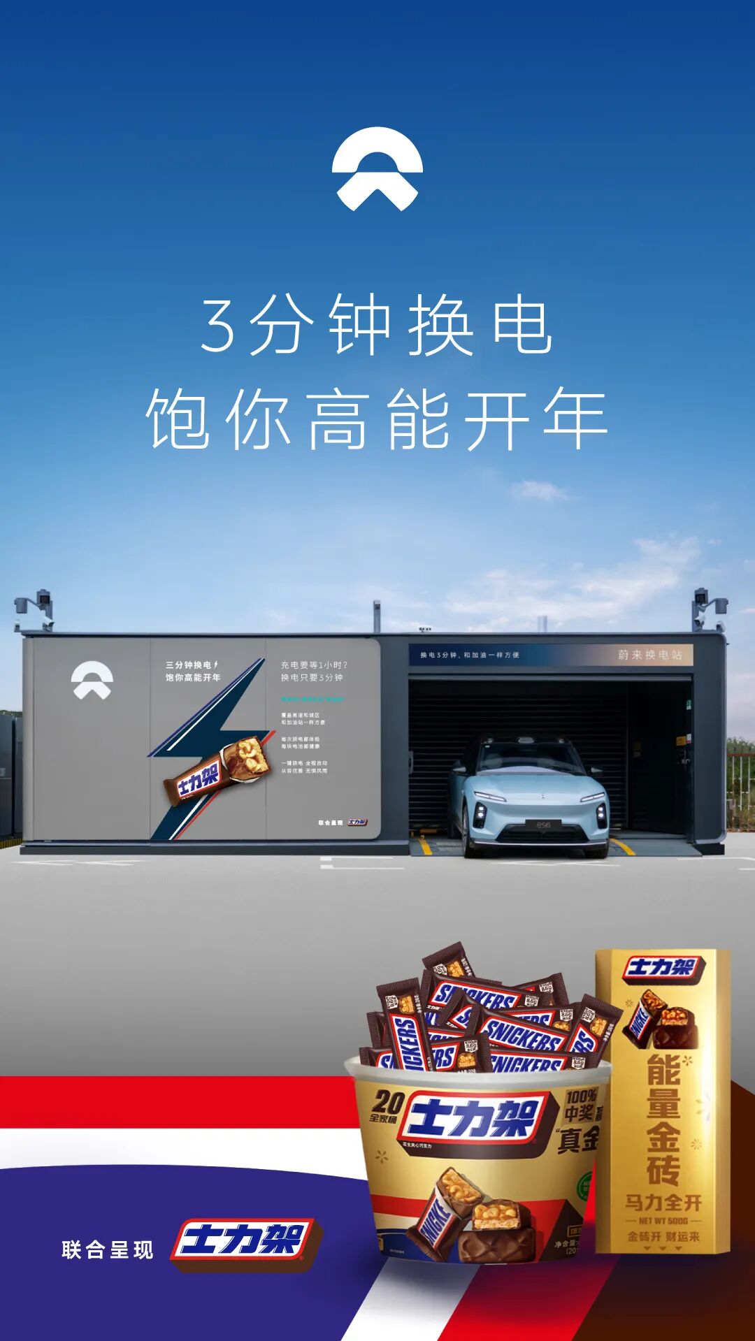 蔚来换电站携手士力架,三分钟换电,饱你高能开年!