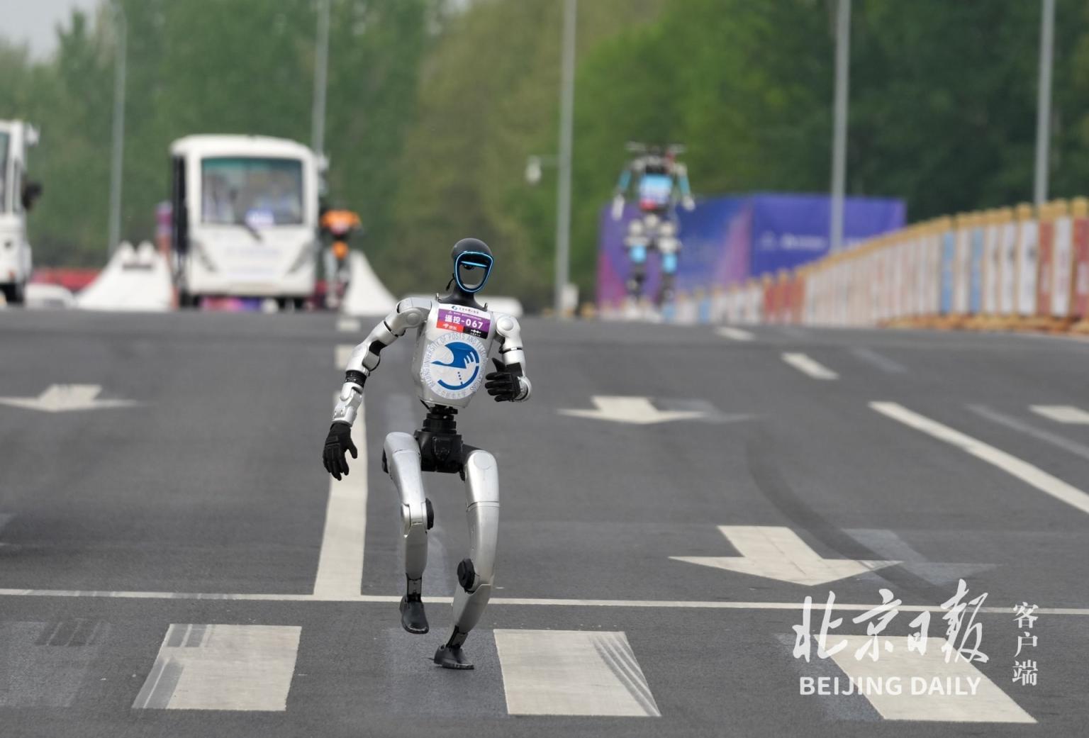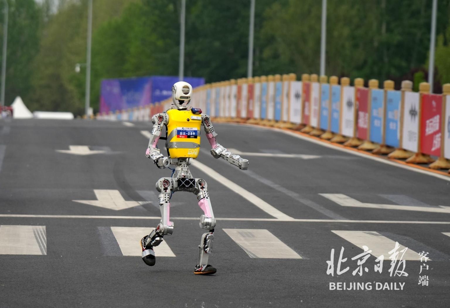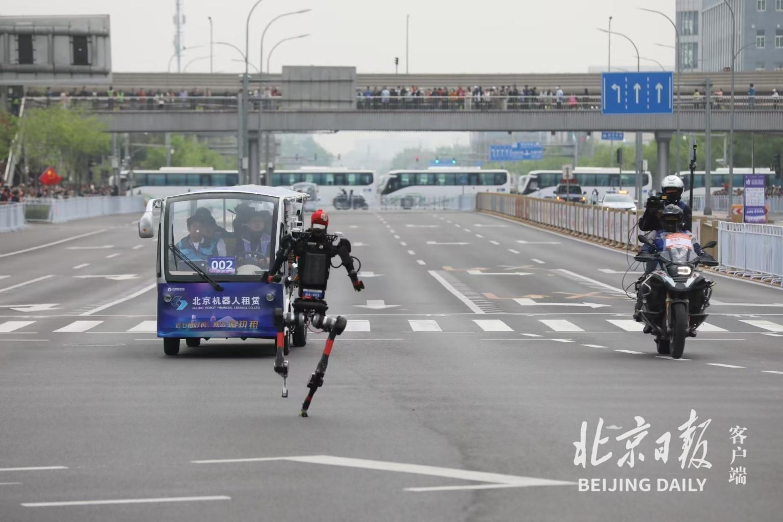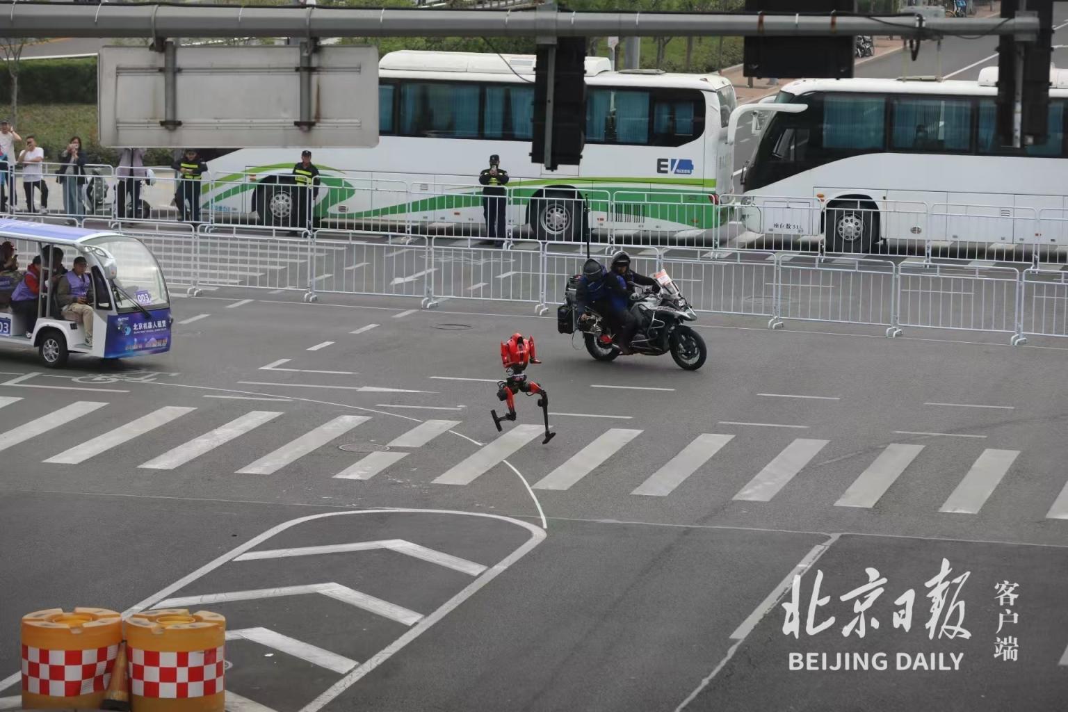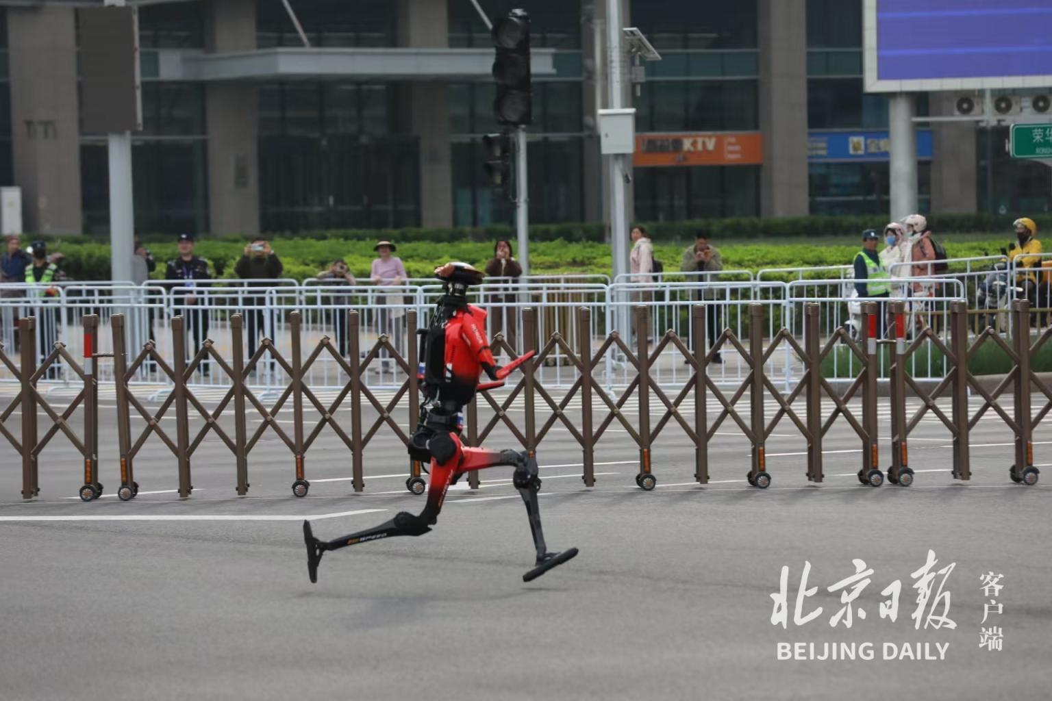 机器人选手跑过亦庄泡桐大道。潘之望 摄