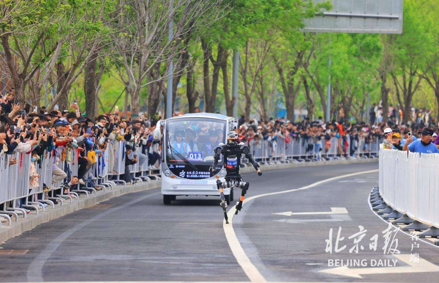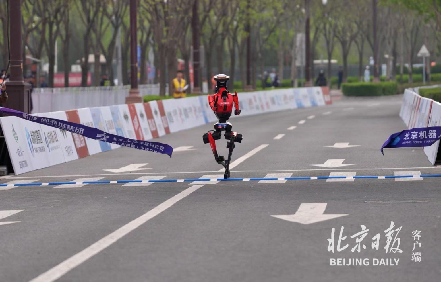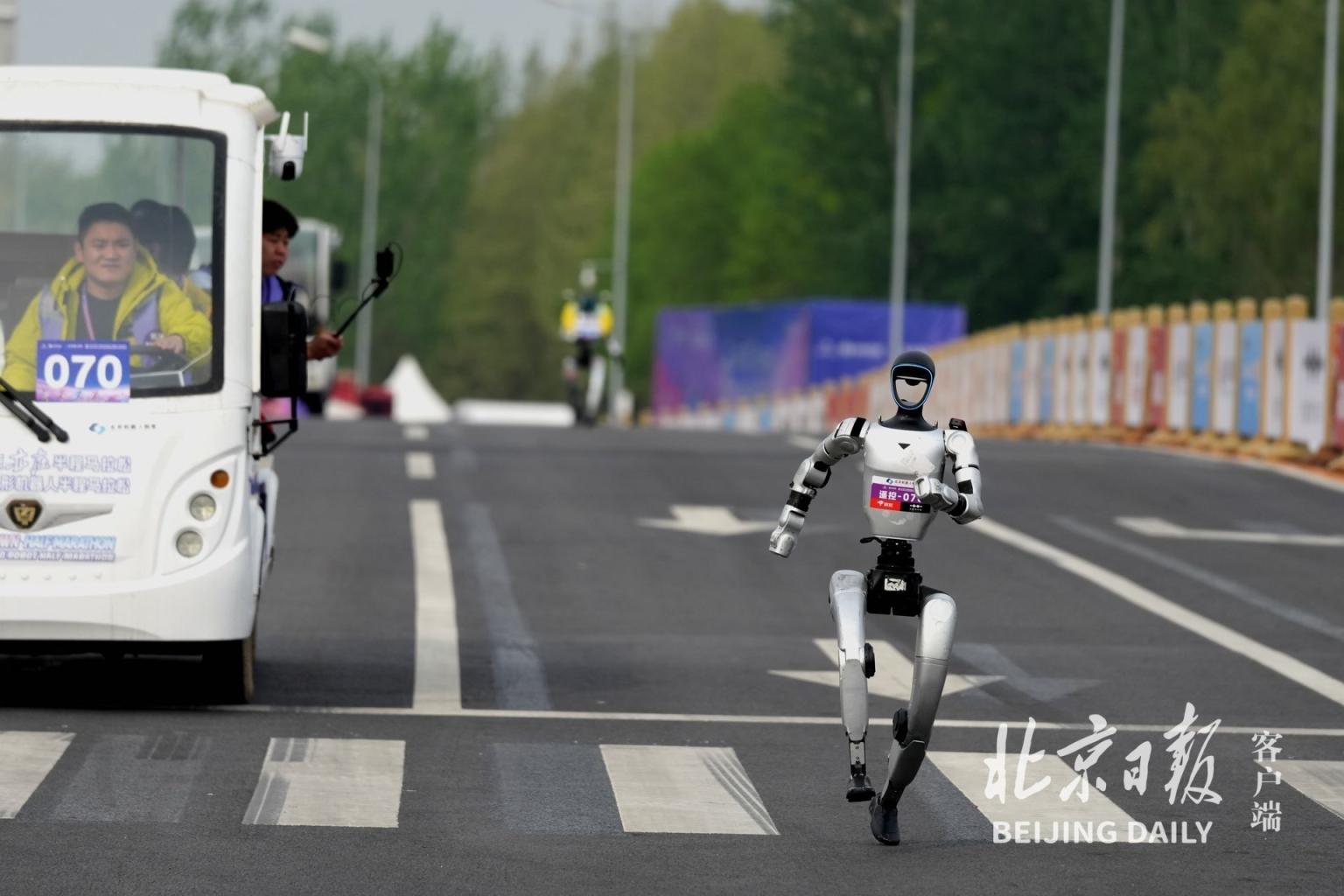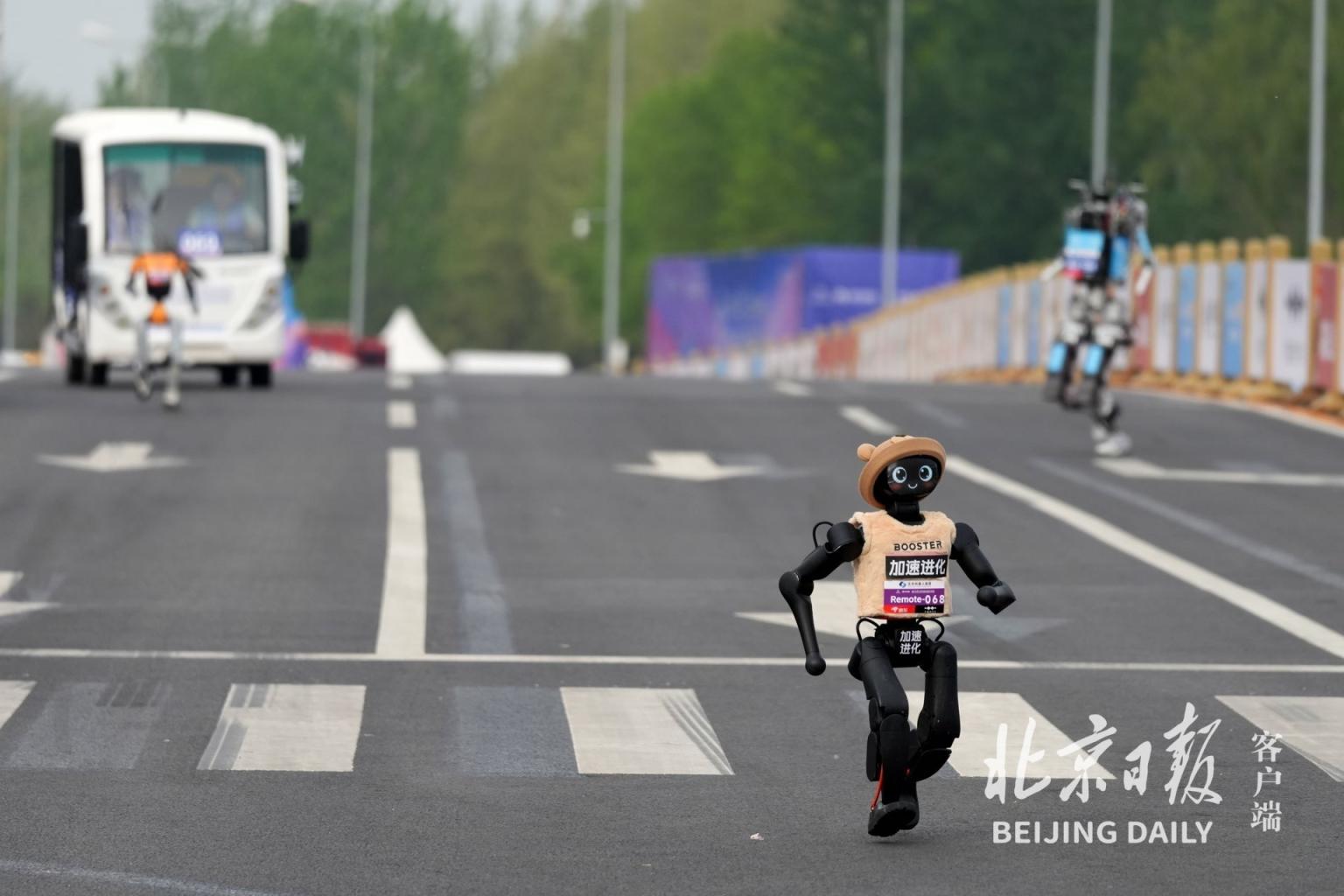 机器人选手跑过亦庄泡桐大道。潘之望 摄