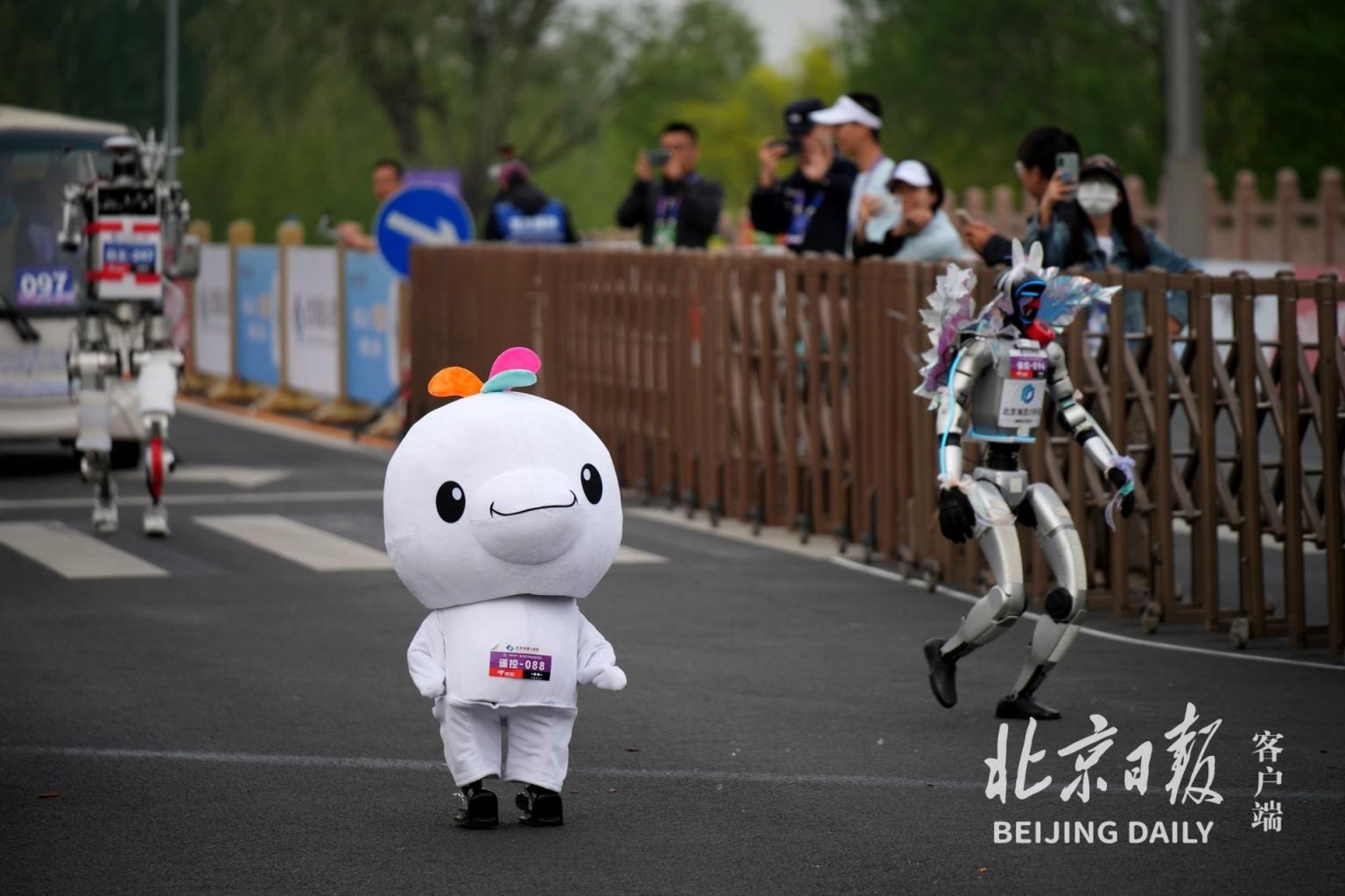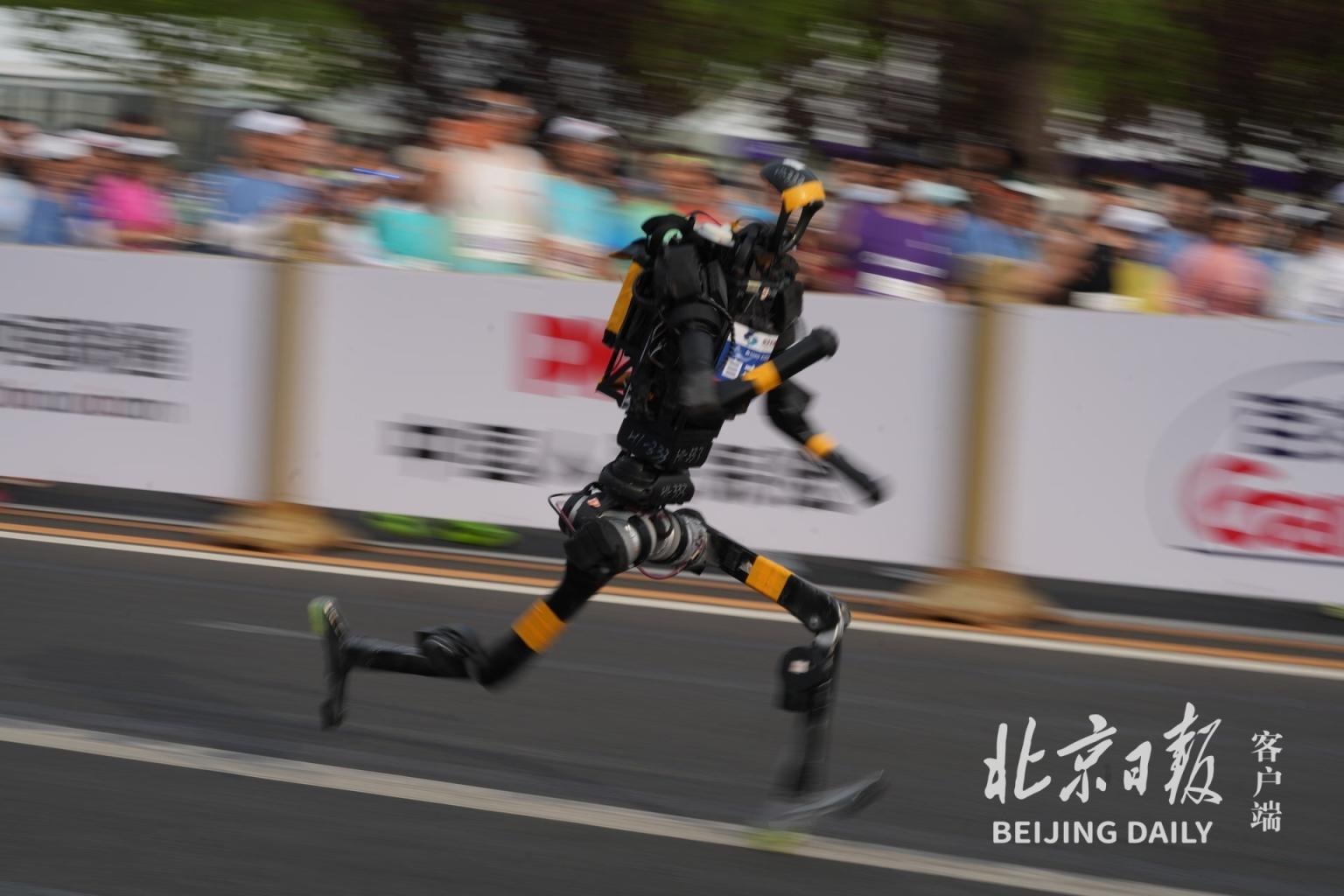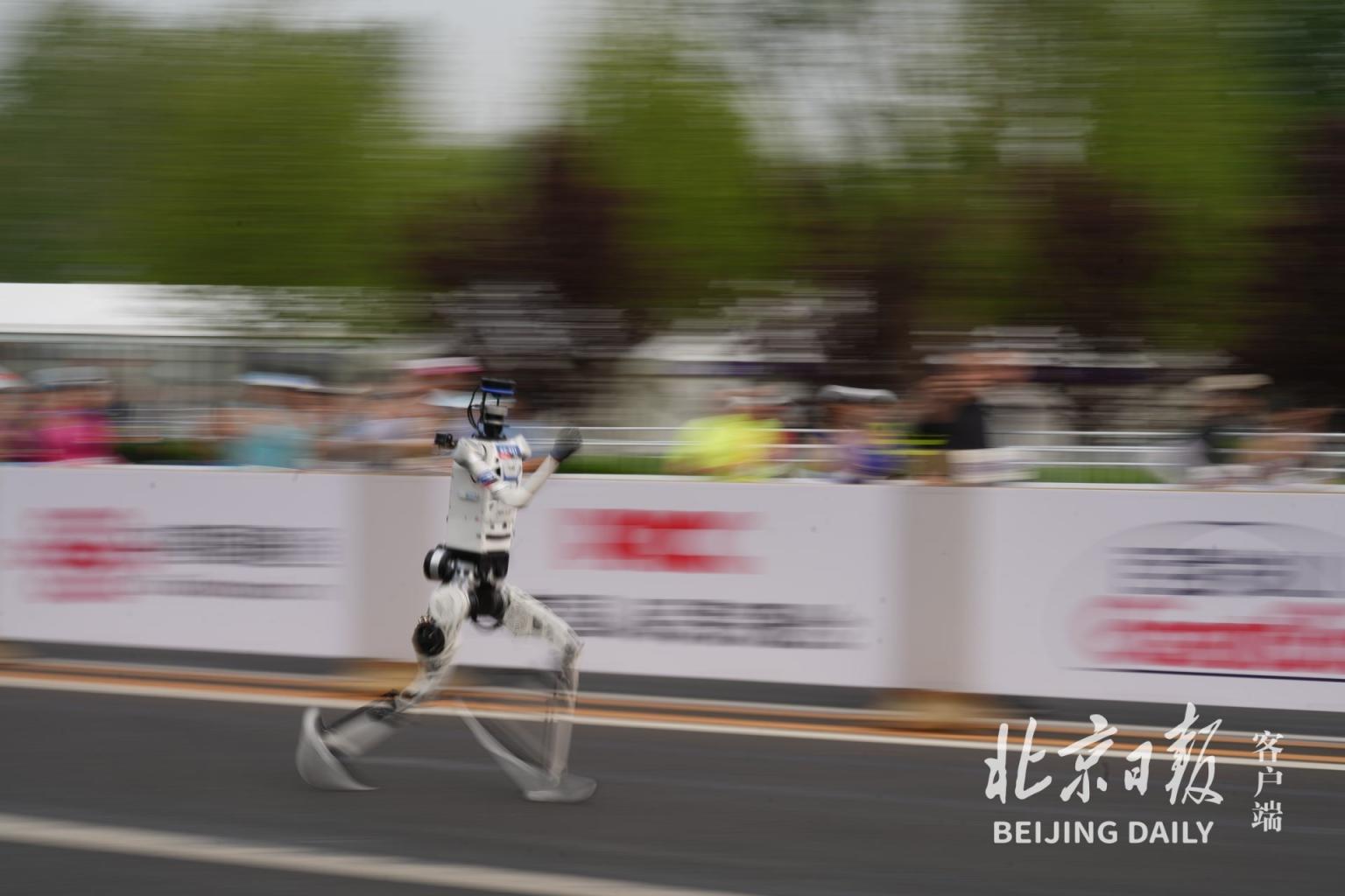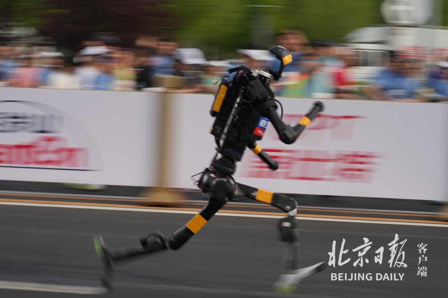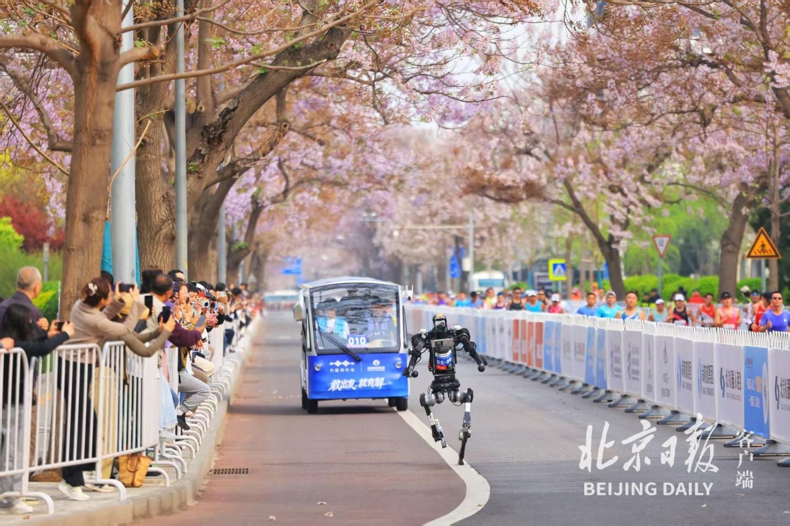 机器人选手跑过亦庄泡桐大道。潘之望 摄