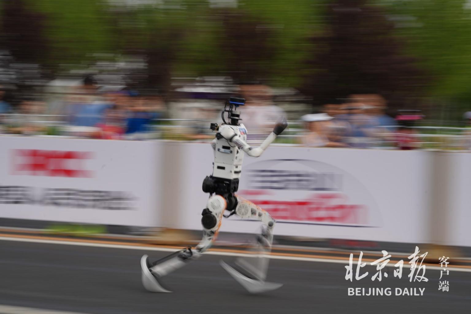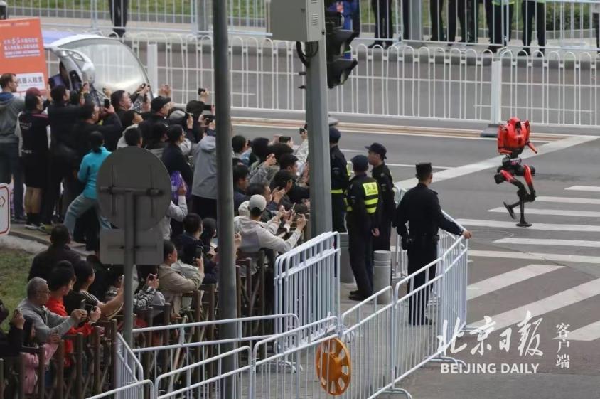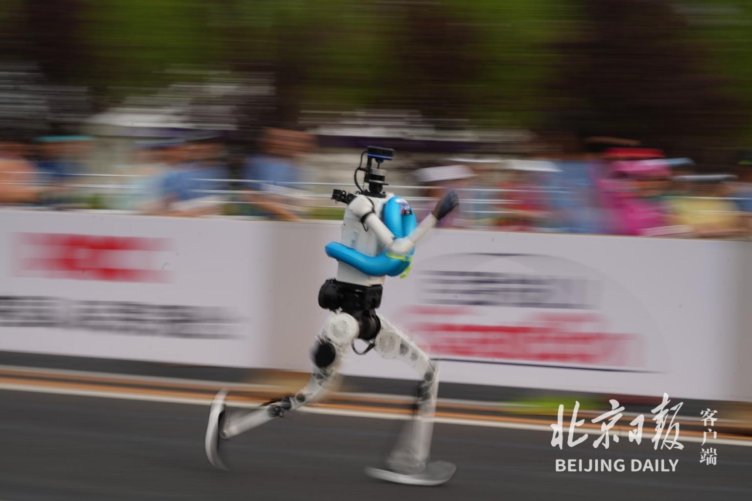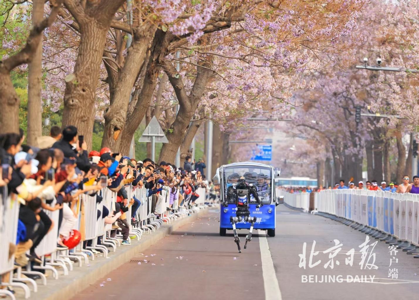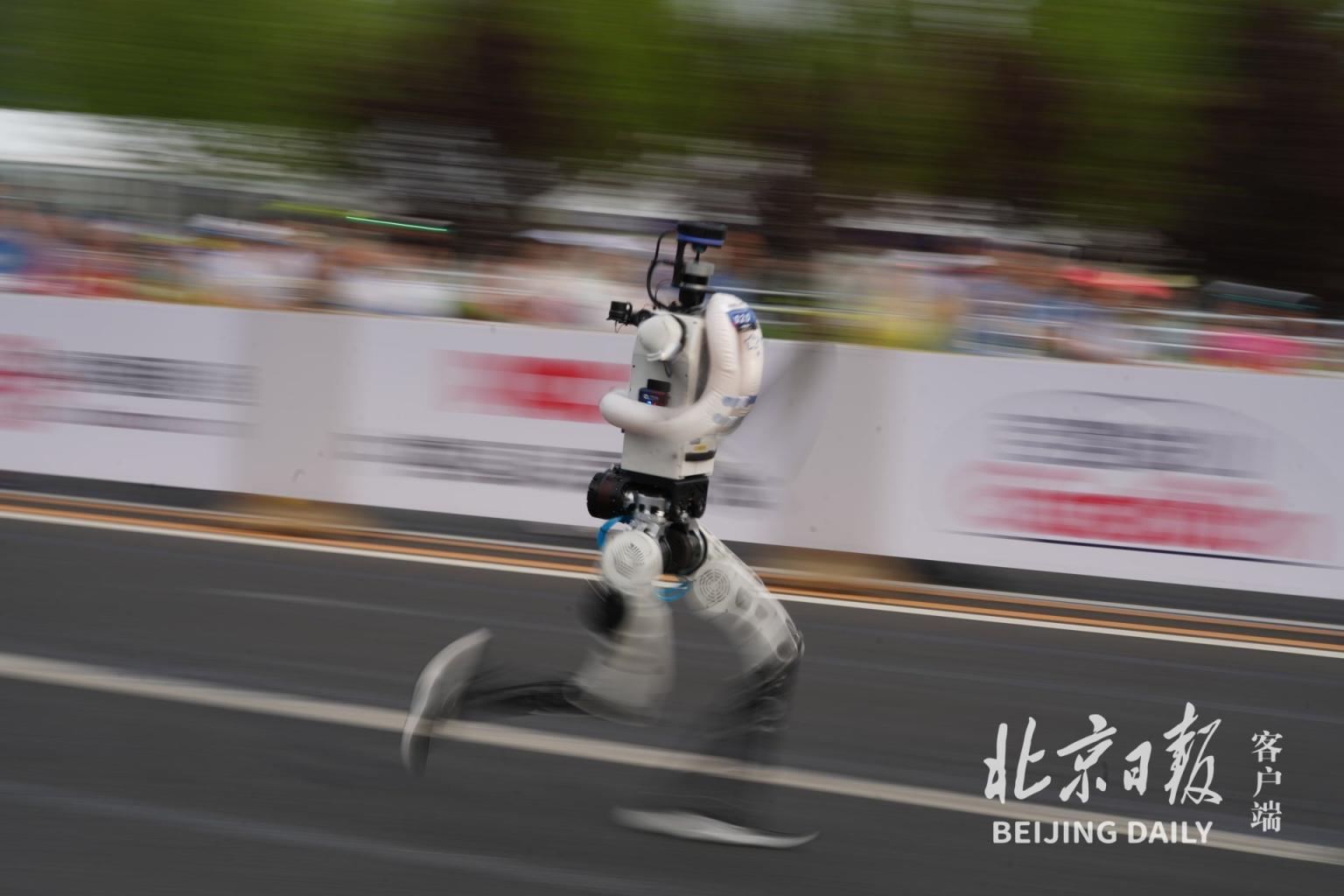 机器人选手跑过亦庄泡桐大道。潘之望 摄