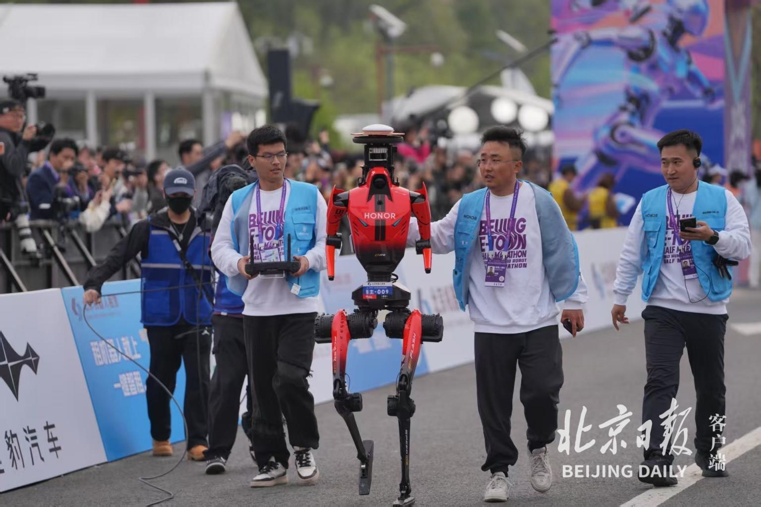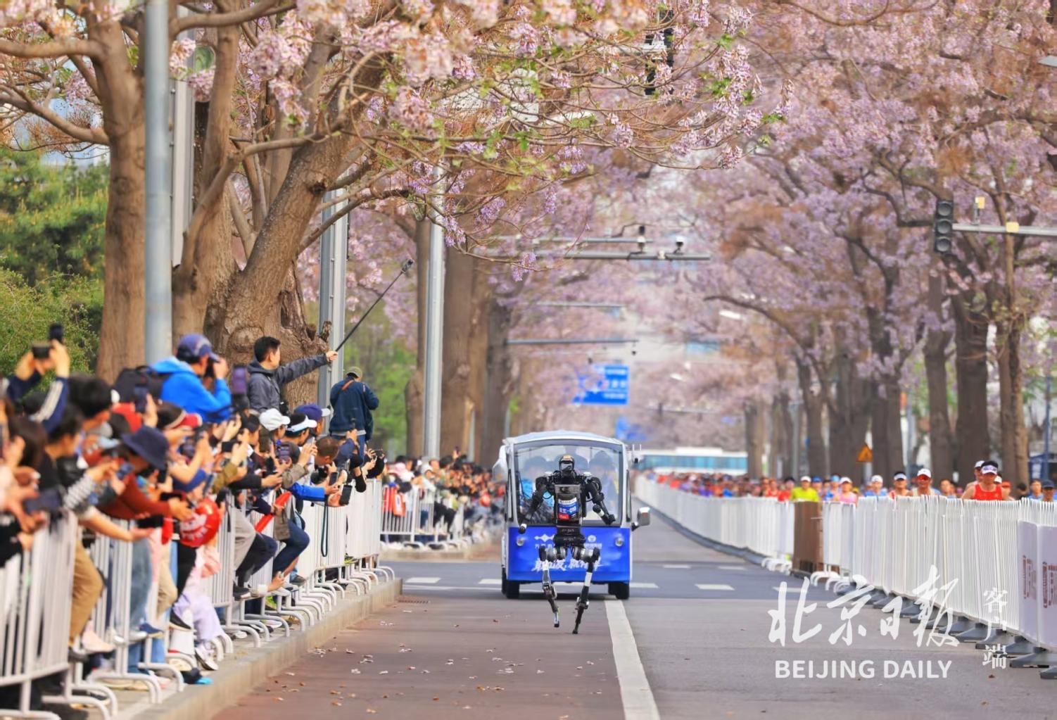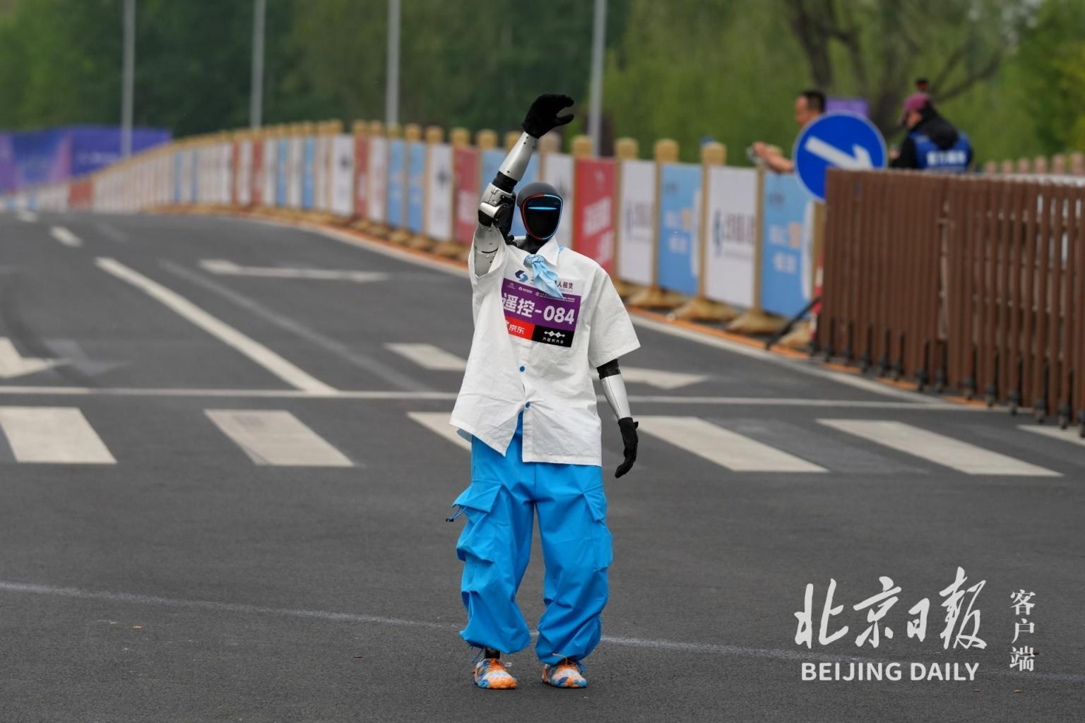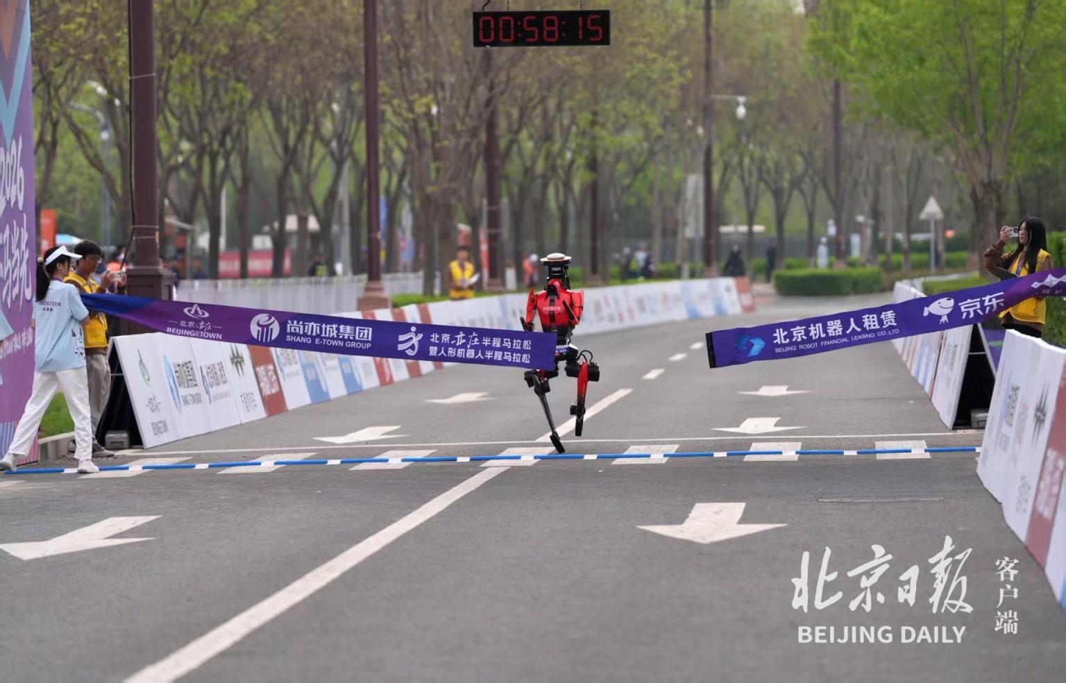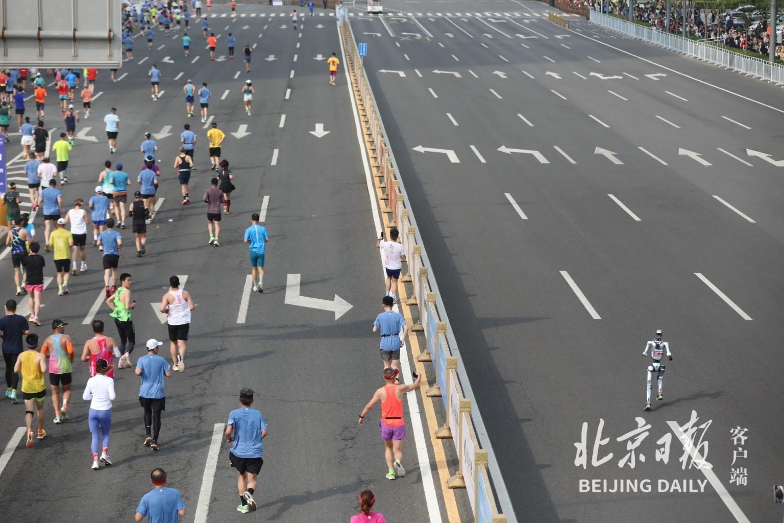 机器人选手跑过亦庄泡桐大道。潘之望 摄