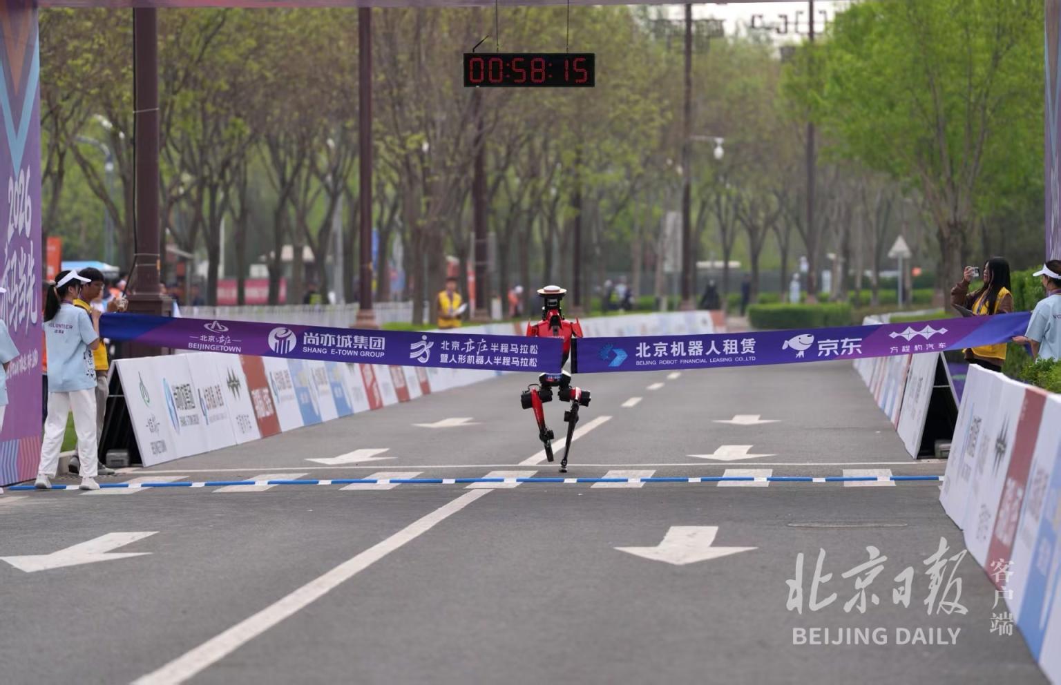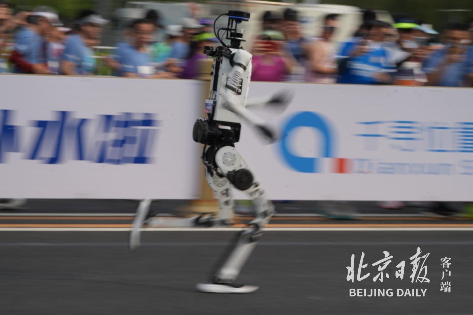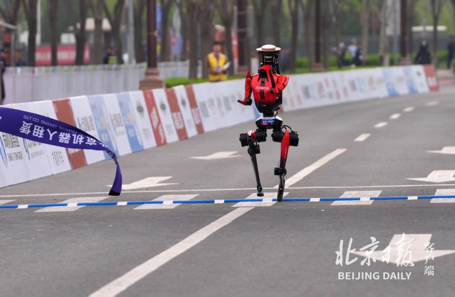 自主奔跑第一名撞线的机器人。和冠欣 摄